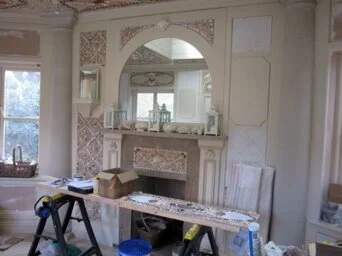 The project took about 18 months from start to finish. The joy of creating something bespoke is that ‘anything goes’. So whilst adhering to some Classical and Georgian, influences it was fun to be able to design some panels with my children and even have our spaniel’s paw print on a lower panel.
